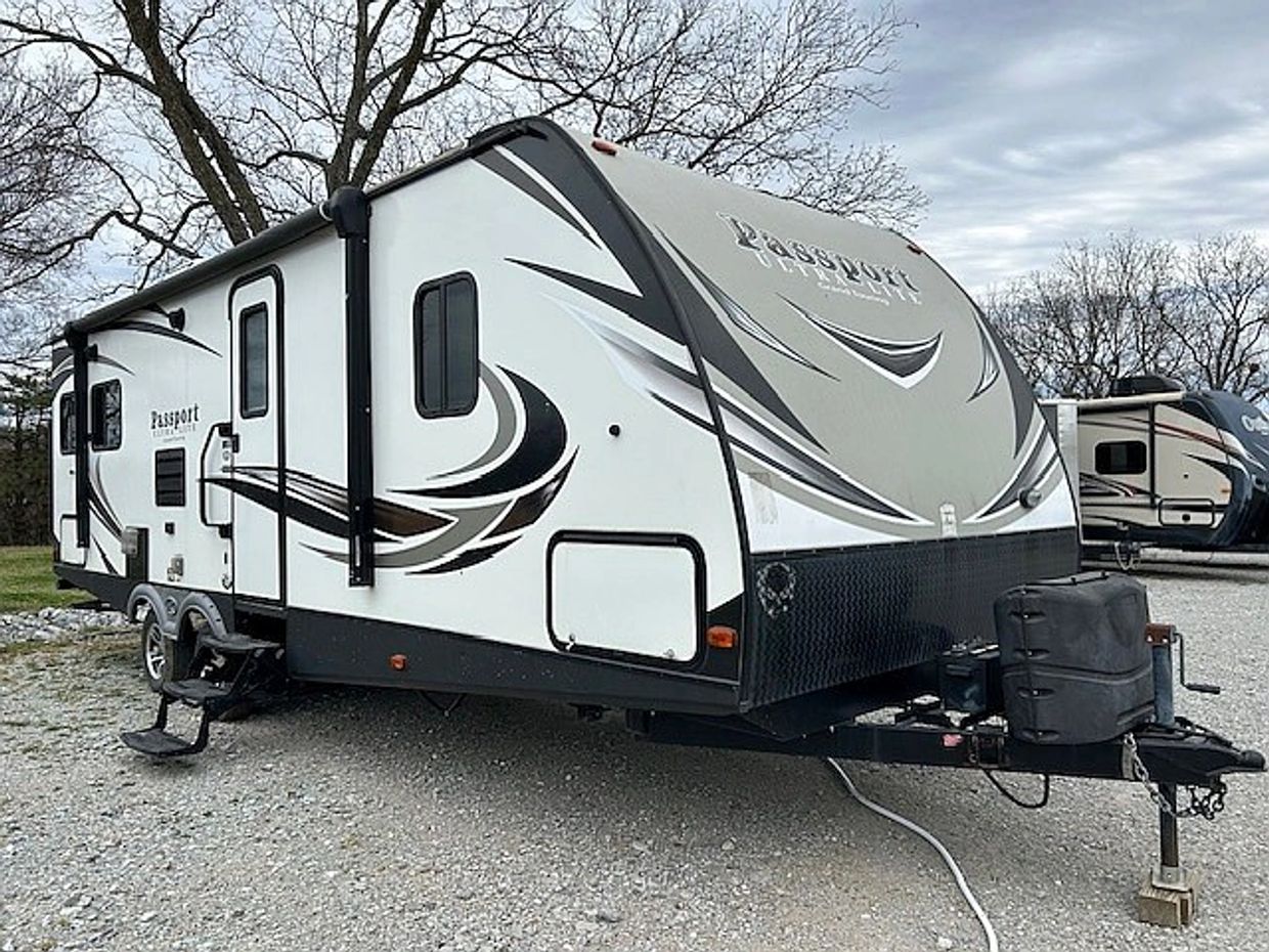 We’ve got a 2019 Keystone Passport Grand Touring 2520RL that’s ready for its next adventure. It’s a 29-foot double axle travel trailer with one slide, and it only weighs 4,930 pounds — light enough for many half-ton trucks and SUVs to tow comfortably. It sleeps six, making it a great option for families or anyone who likes to bring friends along.