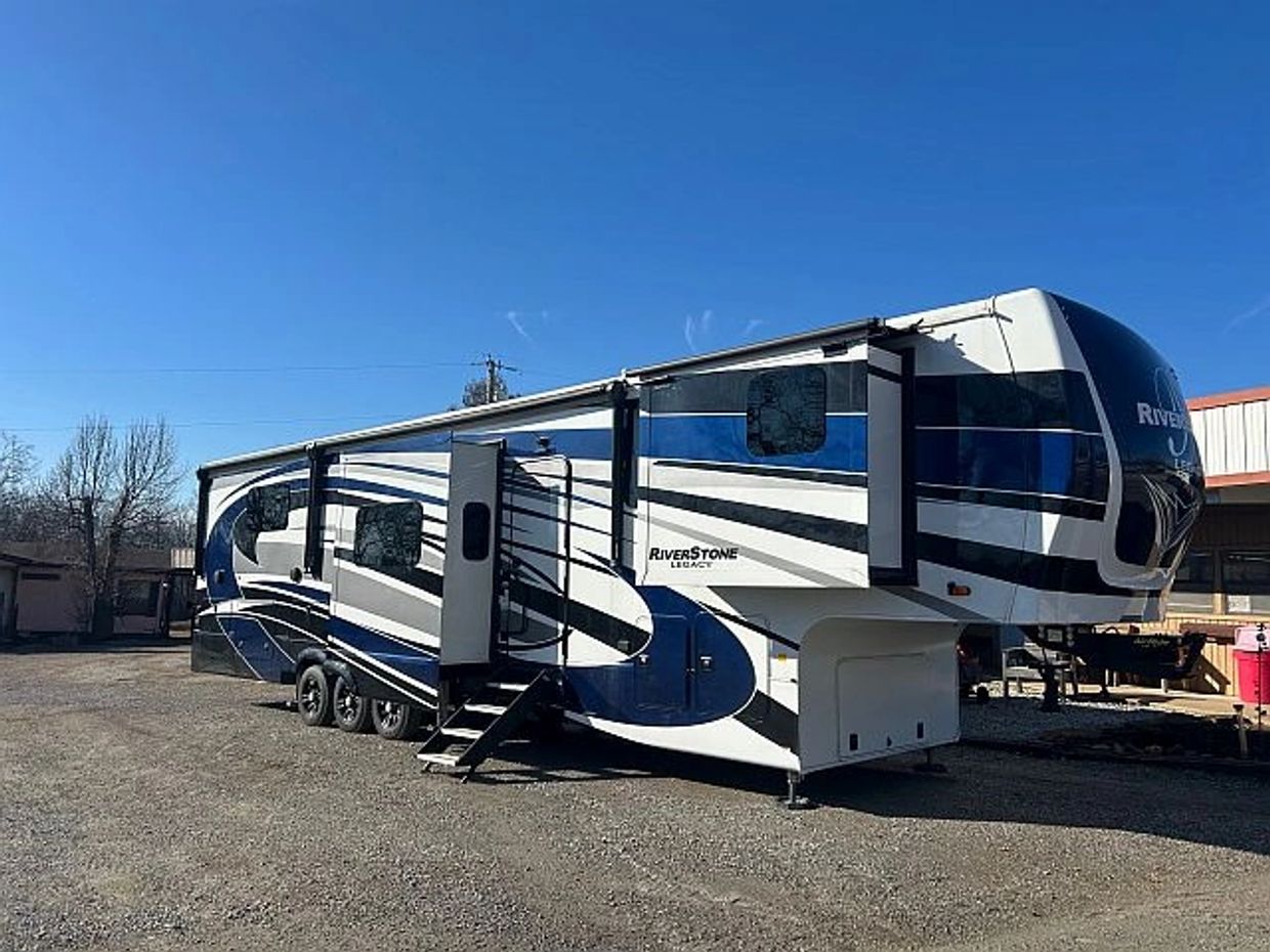 Experience unparalleled luxury and convenience in this stunning 2022 Forest River Riverstone Legacy 42FSKG, a 44-foot triple axle toy hauler fifth wheel. Before you even take it home, our dedicated team conducts three thorough inspections, culminating in a comprehensive pre-delivery walkthrough where our technician will demonstrate the operation of all systems to ensure everything is working flawlessly.